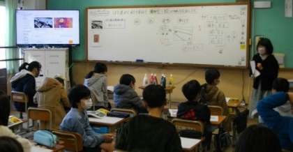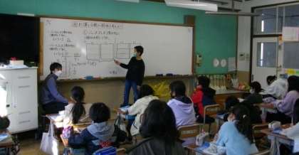 5年生は,算数で,割り算と分数の関係について説明しています。
