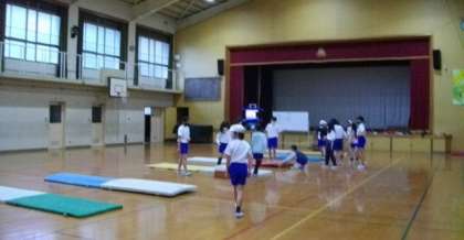 5年生は,マット運動に取り組んでます。
