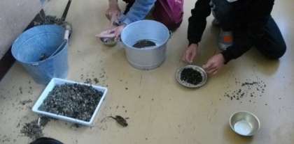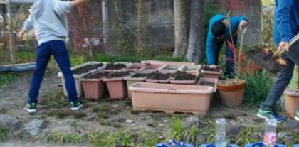 園芸委員会では,プランターに土をいれたり,球根を植えたり,今年収穫したひまわりやアサガオの種を数えたりしてくれました。