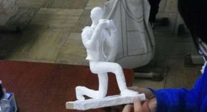 カメラマンの服は,しわを再現し,フードまで作りこんであります。