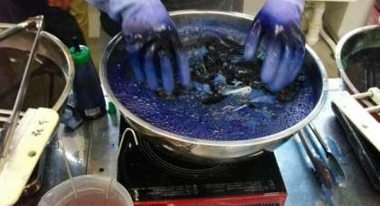 江戸時代中期には,鹿の子絞りの全盛期を迎えたそうで,その後も手先の技は着実に受け継がれて来ています。今日は,受け継いでおられる皆さんの思いにも触れることができたことでしょう。