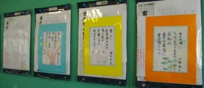 掲示板には,書写で取り組んだ作品が掲示されています。