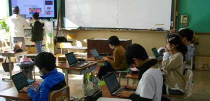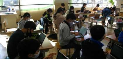 4年生は,タブレットを使って環境に関する学習を進めています。