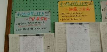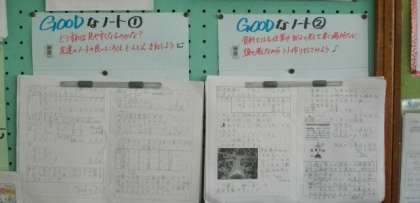 掲示板には,すてきなノートのコピーが掲示してあります。工夫していますね。