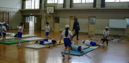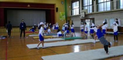3年生は静原小学校のお友達と,マット運動に取り組んでいます。