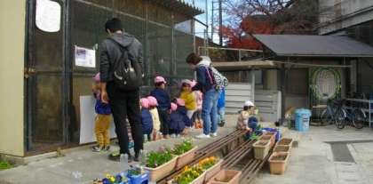市原野保育園のお友達が,お散歩で校門前を通られました。