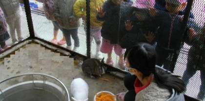 中間休みの時間帯でしたので,なかよしうさぎを見て頂きました。飼育委員会のお友達がえさをあげているところでした。