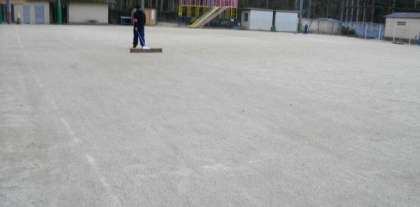 終わった後に運動場にブラシをあけていただきました。