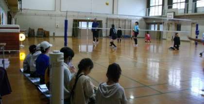 終了後,バレー部の練習を見学しているお友達がいました。