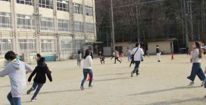 PTA主催の遊ぼう会が「1時間限定で,大人も子どもといっしょに思いっきり遊ぼう!」のコンセプトのもと,開催されました。今日は,来年度に統合する静原小学校のお友達も参加してくれました。バレーボール部の皆さんも,練習を一時中断して,遊ぼう会に参加してくれました。