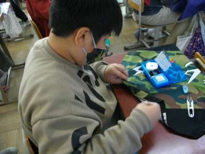 6年生は家庭科の学習で,エプロンづくりに取り組んでいます。