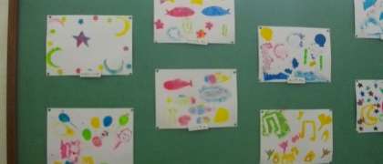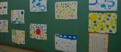 掲示板には,図画工作の作品が掲示してあります。