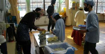 給食の準備が始まりました。