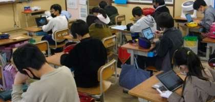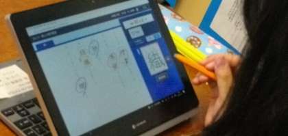 5年生は,タブレットを使って漢字の復習問題に取り組んでいます。