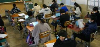 6年生は,始業前に読書をしたり文集の原稿をつくったりと,自分で決めた課題に取り組んでいます。短い時間ですが,「〜をしたい」という意欲や「〜をしよう」という気持ちをもつことや,意思決定をして行動することは,とても大切なことだと思います。