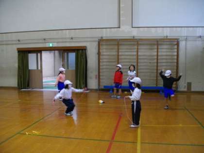 まわりのお友達や先生も,いっしょに跳んでいますね。