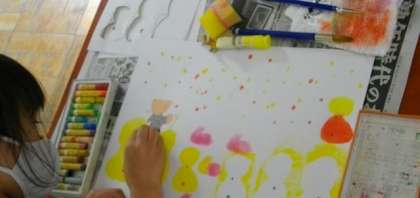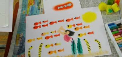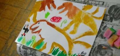 切り抜いた型紙と,残りの型紙を組み合わせる工夫をしているお友達がいました。