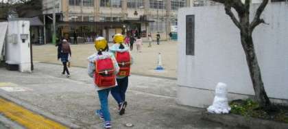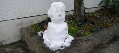 校門前に,今年最初のかわいい雪だるまが登場し,子どもたちを迎えています。