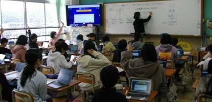 タブレットを机上に置いて学習するスタイルが定着してきました。