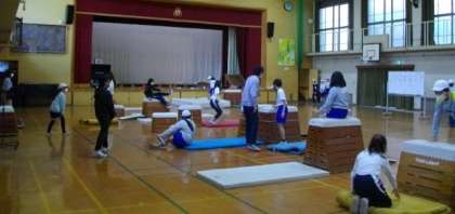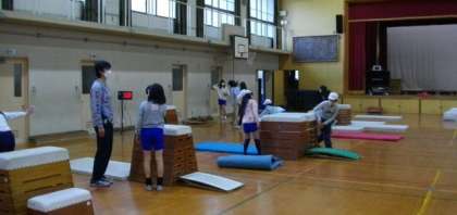 5年生は体育館で跳び箱運動に取り組んでいます。
