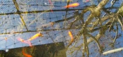 池に30匹の小赤金魚が仲間入りしました。元気に育ってくれますように…