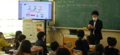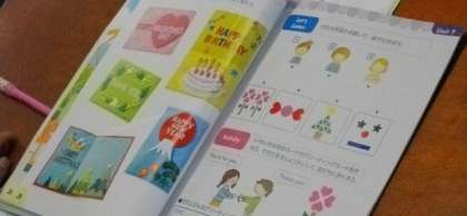 3年生の外国語活動の様子です。色や形を言って,ほしいものを手に入れていく活動をカードを使いながら取り組んでいます。