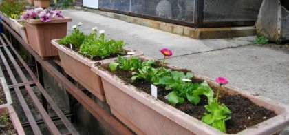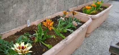 プランターに花を植えています。 子どもたちの登校を楽しみにしています。