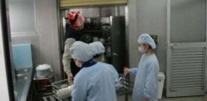 給食の準備が始まりました。