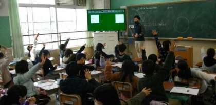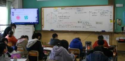 3年生は,三角形の性質について考えています。たくさん手が挙がっています。