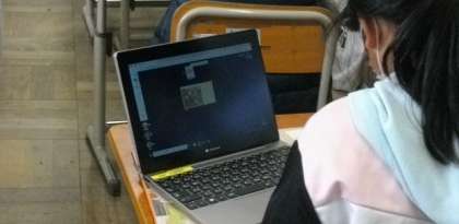 (ちょうど授業が終わったところで,ロイロノートにふりかえりを入力しているところでした。)