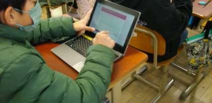 6年生は,デジタルドリルを使って総復習に取り組んでいます。