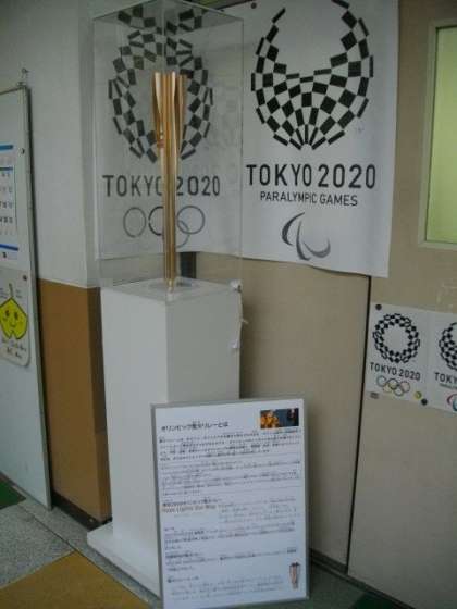 期間限定で,オリンピック聖火リレーで使われたトーチをお借りすることができました。