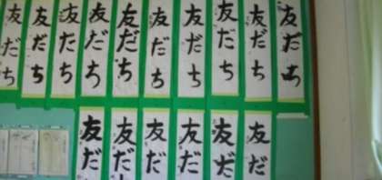 3年生は,算数で整数と小数について学習をしています。教室には,書写の作品を掲示しています。