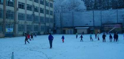 さっそく運動場では,雪遊びが始まりました。