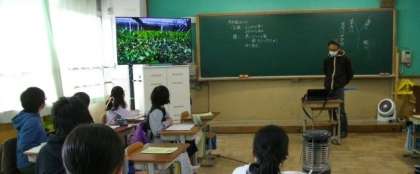 5年生は,縄跳びをした後,ペース走に取り組んでいます。4年生は,社会科で京都の特産物について学習をしています。今日は「お茶」をテーマにして学習をしています。