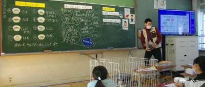 「お魚には,どんなえいようがあるのかな」食育の学習を2年生が進めています。自分の経験や考えをたくさん発表していますね。