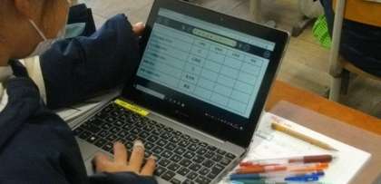 ロイロで配布した「表」に書き込んで,みんなで答え合わせをしていきます。