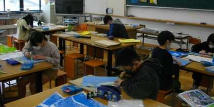 5年生は,図画工作科で色版画に取り組んでいます。