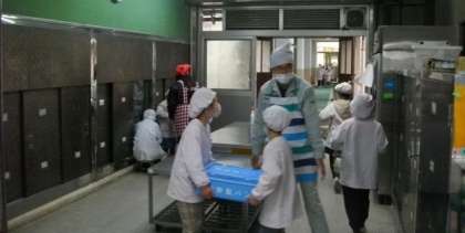 給食室では,けずりぶし,かつおぶし,こんぶだしと色んな出汁を使いますが,おからを作るときにだけ,煮干しで出汁をとります。