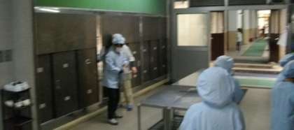 給食の準備が始まりました。