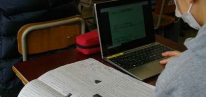 6年生は,国語「海の命」を読んで,主人公がとった行動に対する「自分の考え」を,ロイロノート・スクールを使って入力しています。