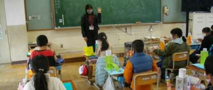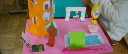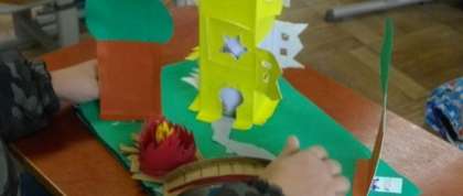 2年生は,色画用紙を使い「楽しい町」を考えて制作しています。