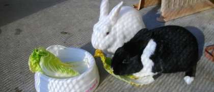 うさぎ小屋は,「ミルク」と「ごましお」の2羽がいます。
