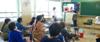 静原小学校のお友達といっしょに,オンラインで朝の会をしています。
