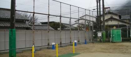 子どもたちが登校してきました。運動場南側のフェンスが完成しました。