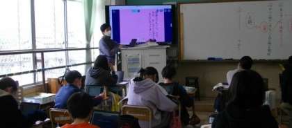 自分の考えを発表するときに,口頭だけでなく,カードに書いたものを使いながら発表すると,より伝わりやすくなるでしょう。様々な試みを進めています。