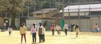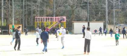 昼休みの様子です。たくさんの子どもたちが外で遊んでいます。
