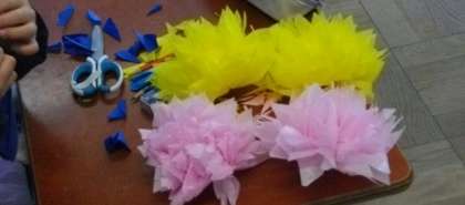 2年生は,6年生を送る会に向けて,お花をつくっています。