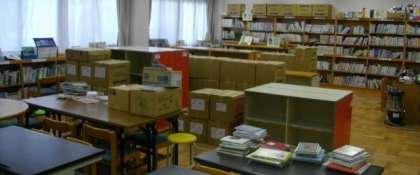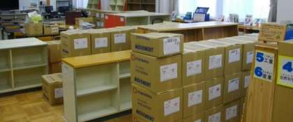 静原小学校の図書館の書架と本を運んでいただきました。