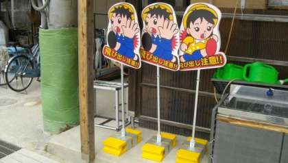 PTAの方が,古い「飛び出し坊や」の看板を撤去し,新しく購入していただいています。順次設置していきます。子どもたちの安全のために,ありがとうございます。
